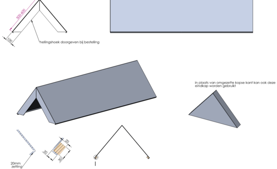 Onze nokvorsten kunnen worden geleverd met kopschotten dicht, open of half open, afhankelijk van de voorkeur van de rietdekker of de details van het project.